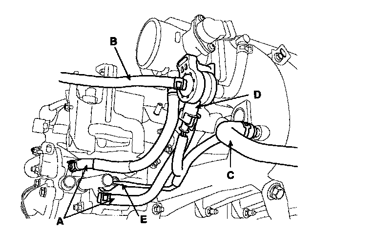 5. Disconnect the PCV(Positive Crankcase Ventilation) hose(D) and breather hose(E).