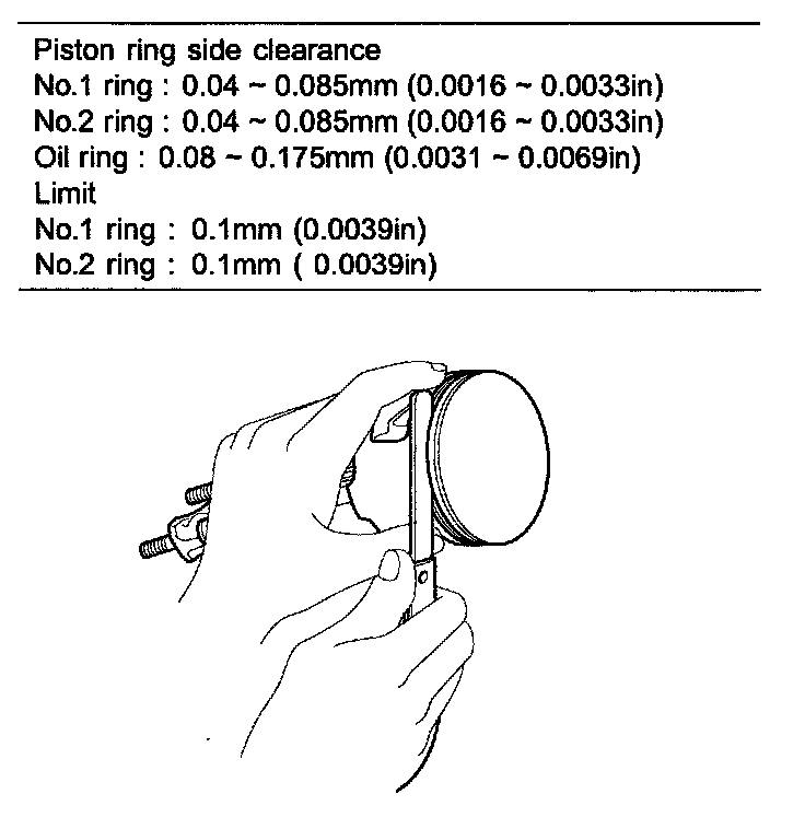 Using a feeler gauge, measure the clearance between new piston ring and the wall of ring groove.