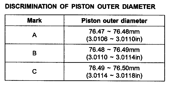 DISCRIMINATION OF PISTON OUTER DIAMETER:
