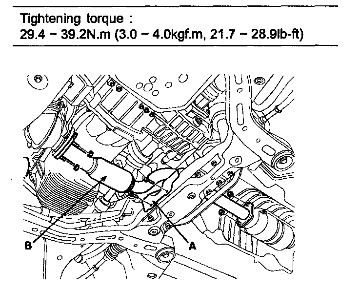 4. Remove the front muffler(B).