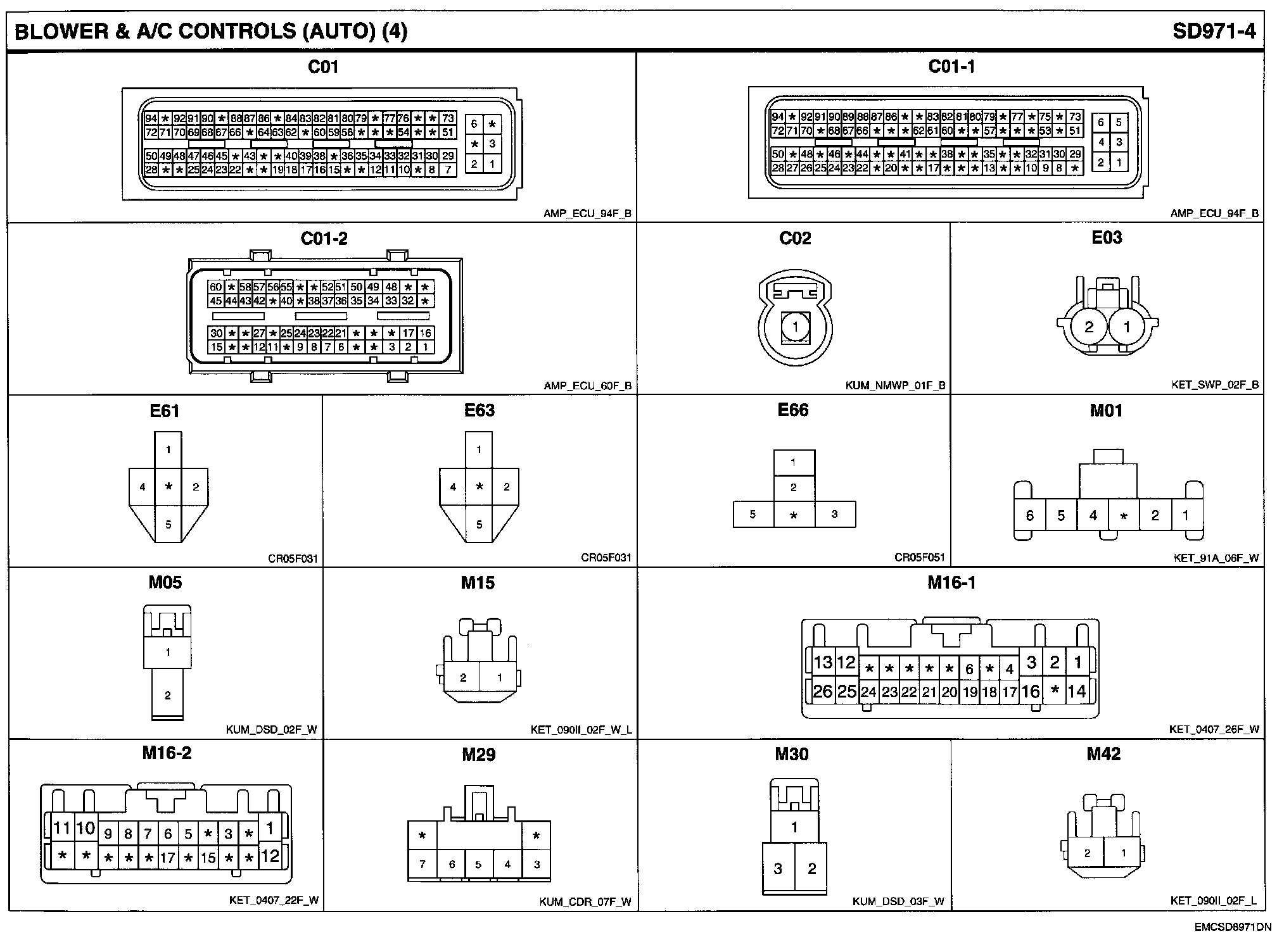 Blower & A/C Controls (Auto) Connector Pin Outs: