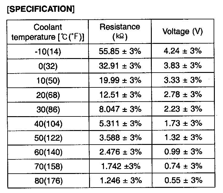 3. If the measured resistance is not specification, substitute with a known-good water temperature sensor and check for proper operation.