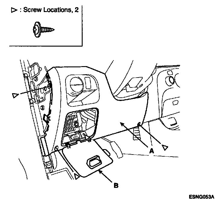 3. Loosening the crash pad lower panel mounting screw. Remove the lower crash pad panel (A).