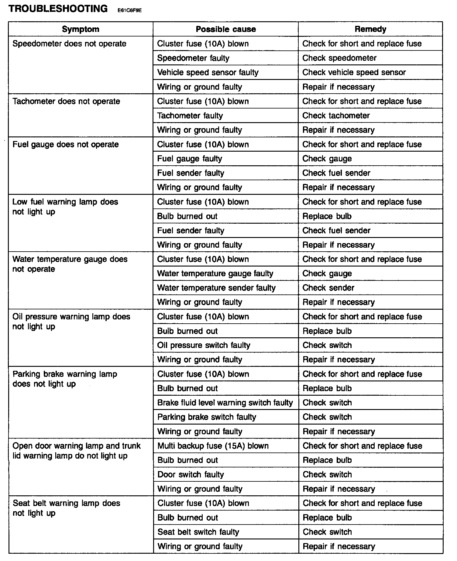 Indicators And Gauges - Troubleshooting: