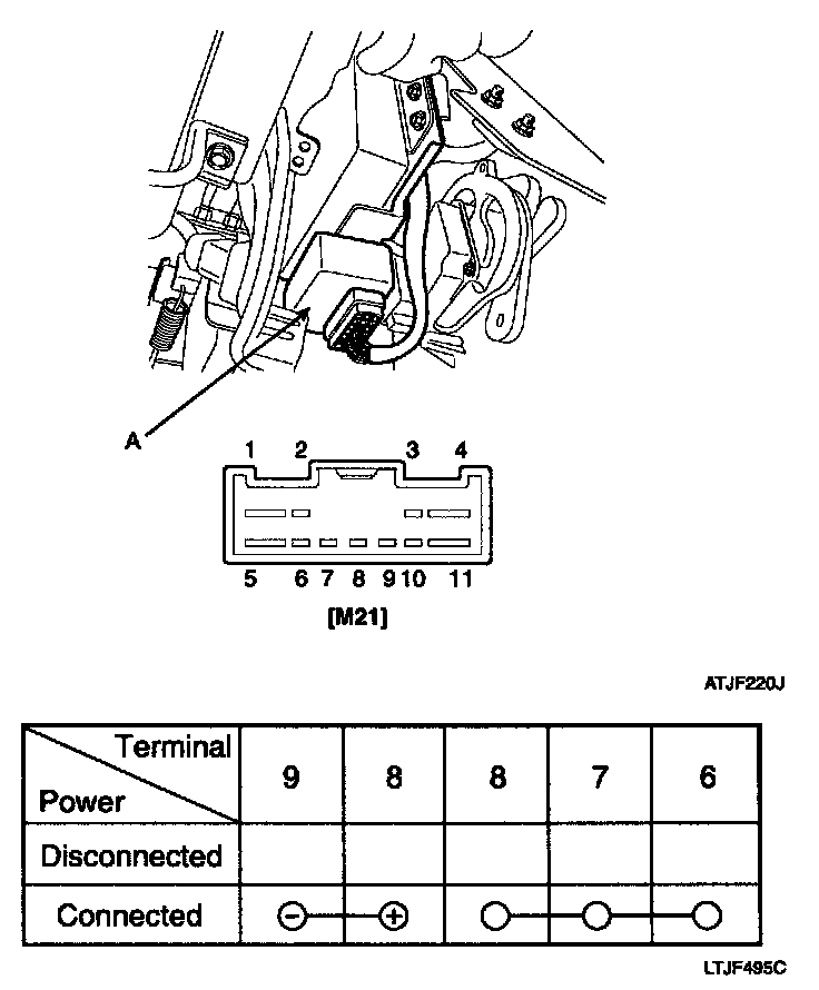 4. There should be continuity between the No.8 and No.6 terminals when power and ground are connected to the No.8 and No.9 terminals.