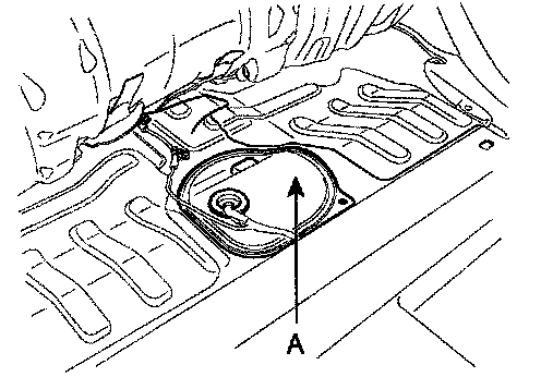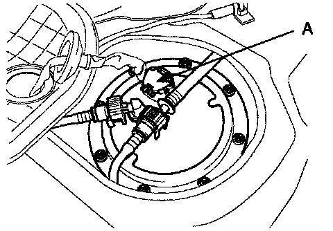 2. Disconnect the fuel feed line (A) and canister hoses (B).