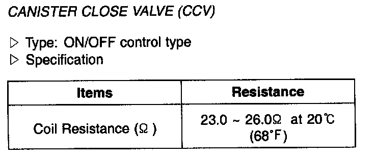 Canister Close Valve (OCV) - Specification: