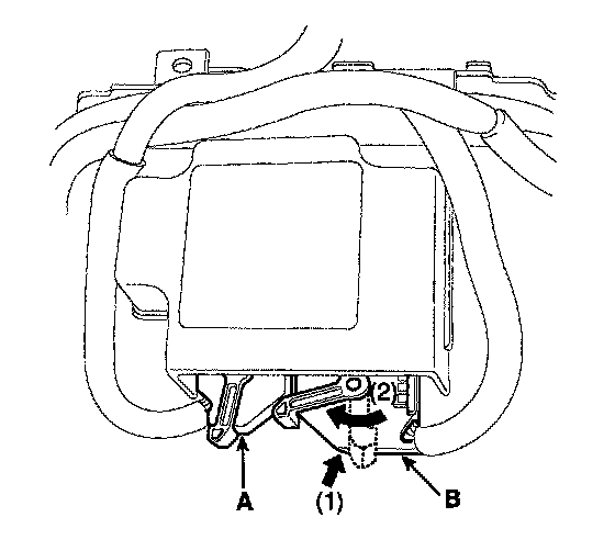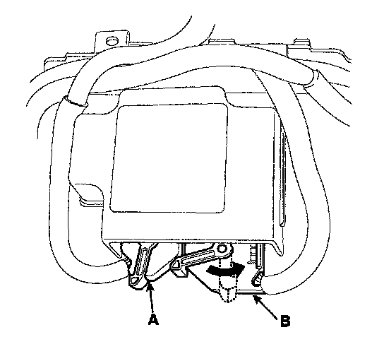 6. Disconnect the SRSCM harness connector(A) and (B) from the SRSCM.