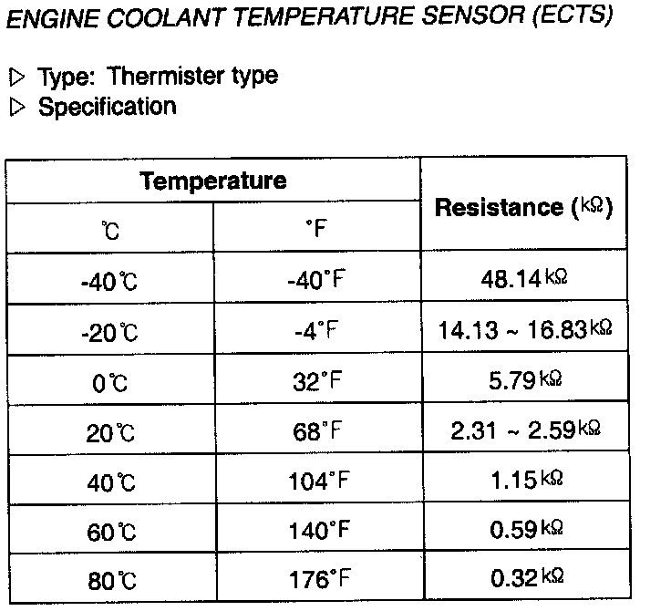Engine Coolant Temperature Sensor (ECTS) - Specification: