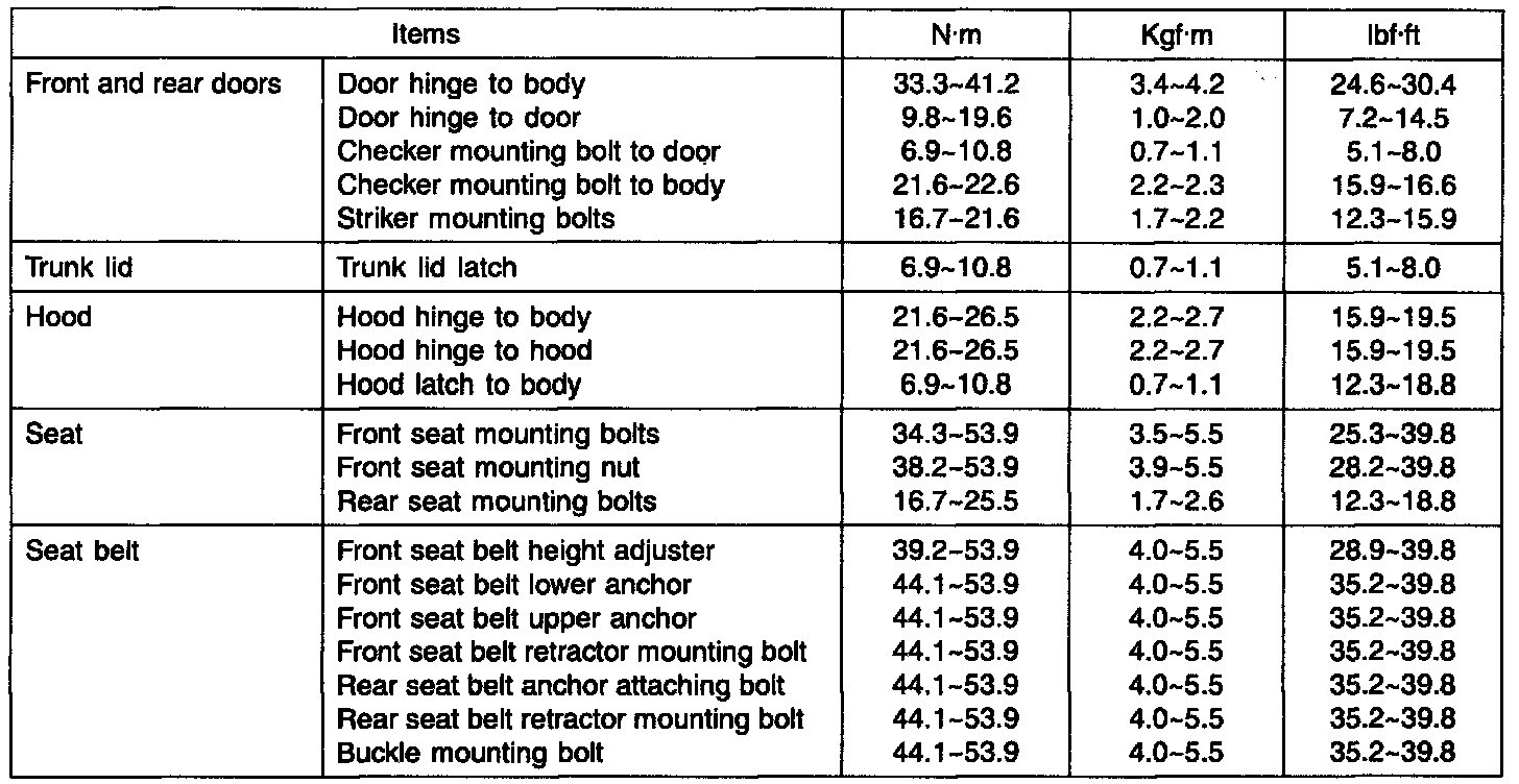 Tightening Torques: