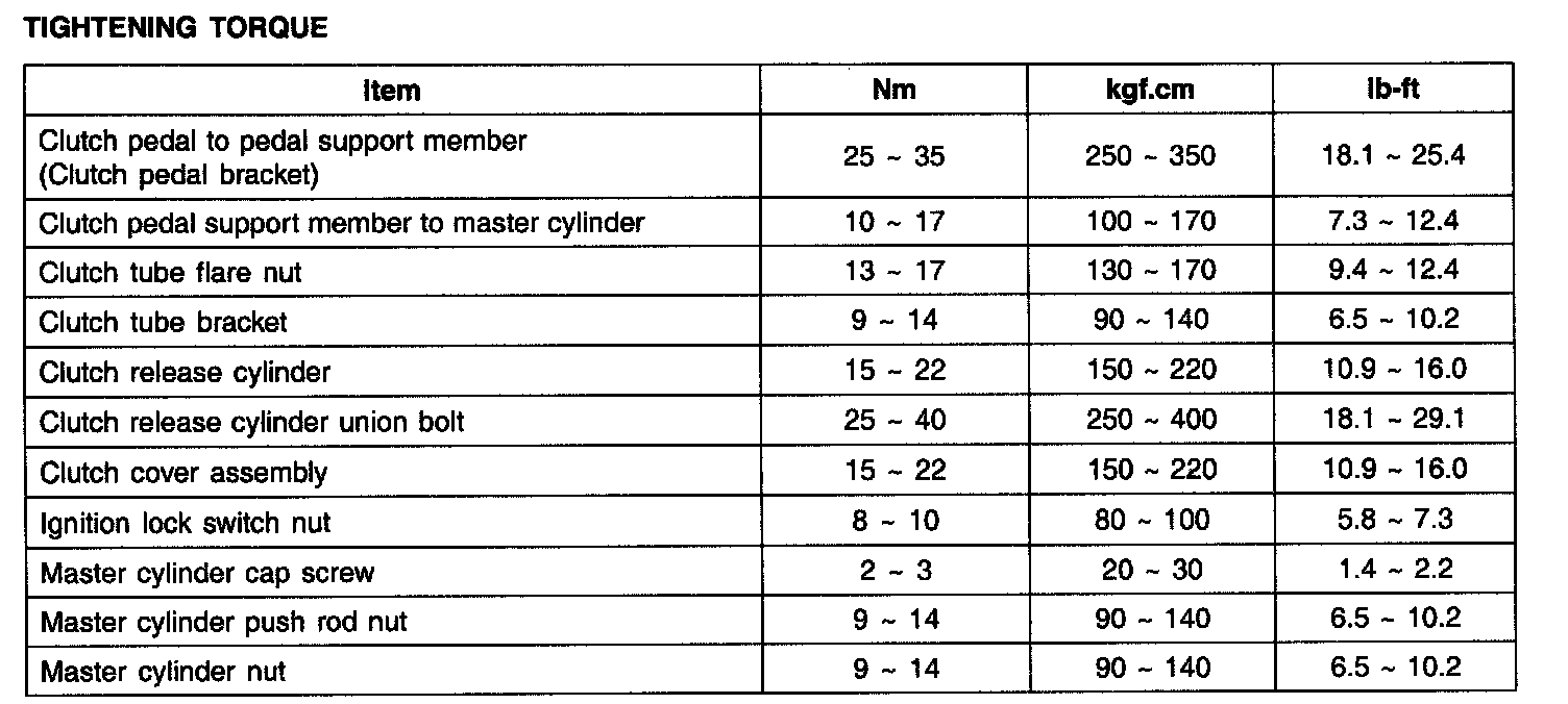 TIGHTENING TORQUE: