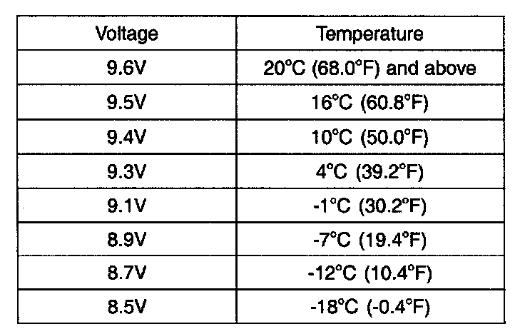 - If the voltage is less than shown in the table, replace the battery.