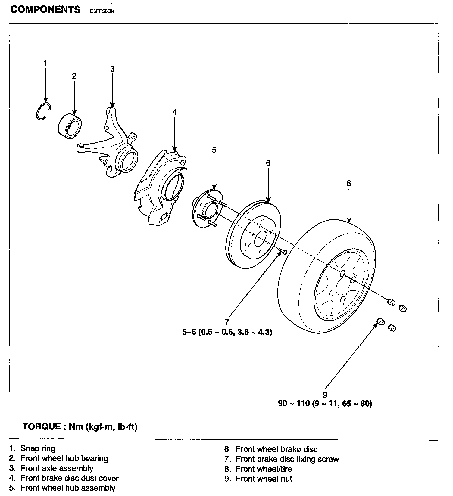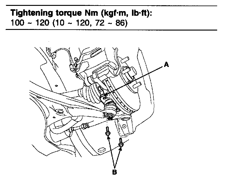 Tightening torque Nm (kgf-m, lb-ft): 90 - 110 (9 - 11, 65 - 80)