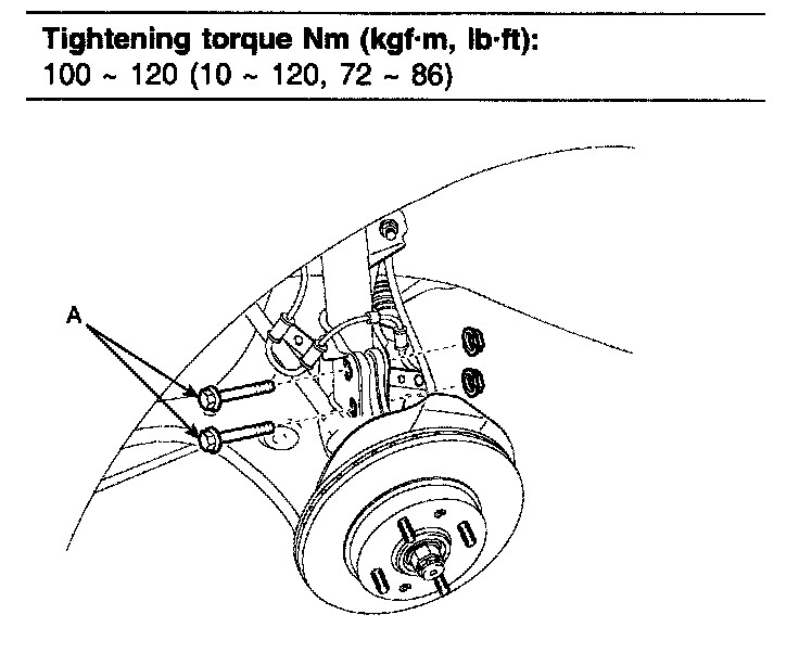 4. Separate the hub from the knuckle by turning nut(A) of the special tool (09517-21500).
