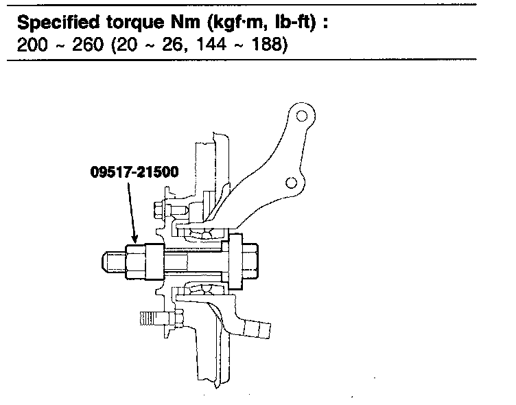 5. Tighten the hub and the knuckle to the specified torque using the Special Tool (09517-21500).