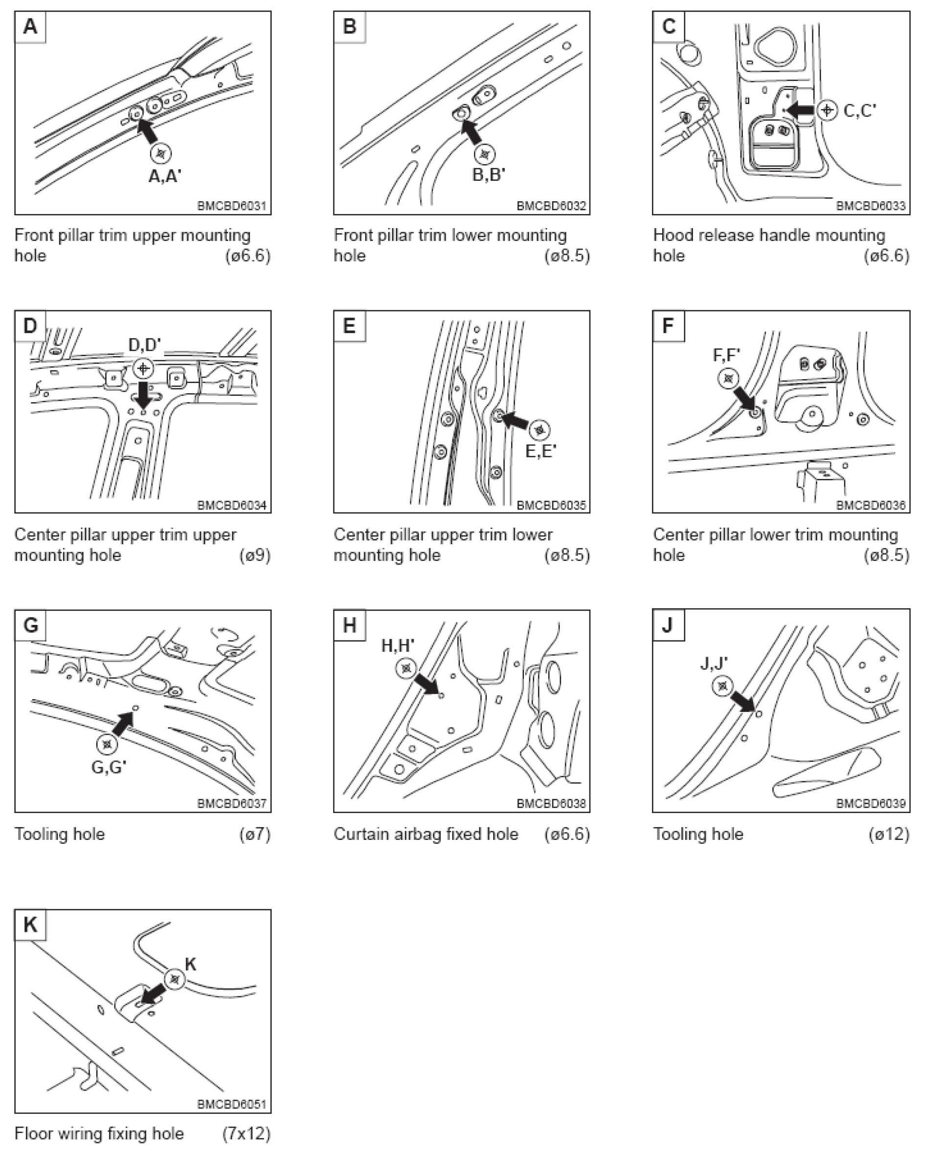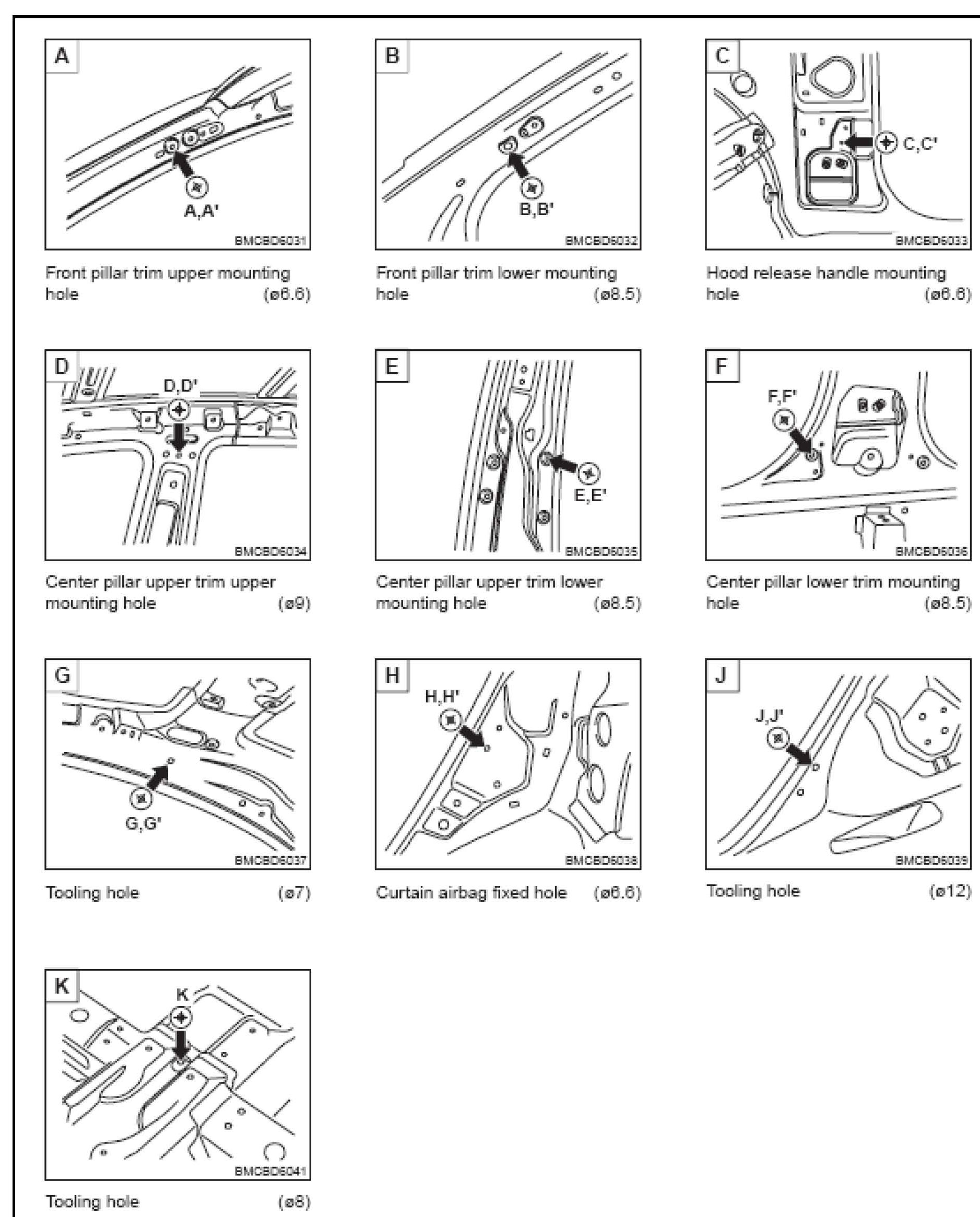 This TSB provides body dimension information for the 4 Door MC Accent. Similar information may be available from suppliers of frame straightening equipment.