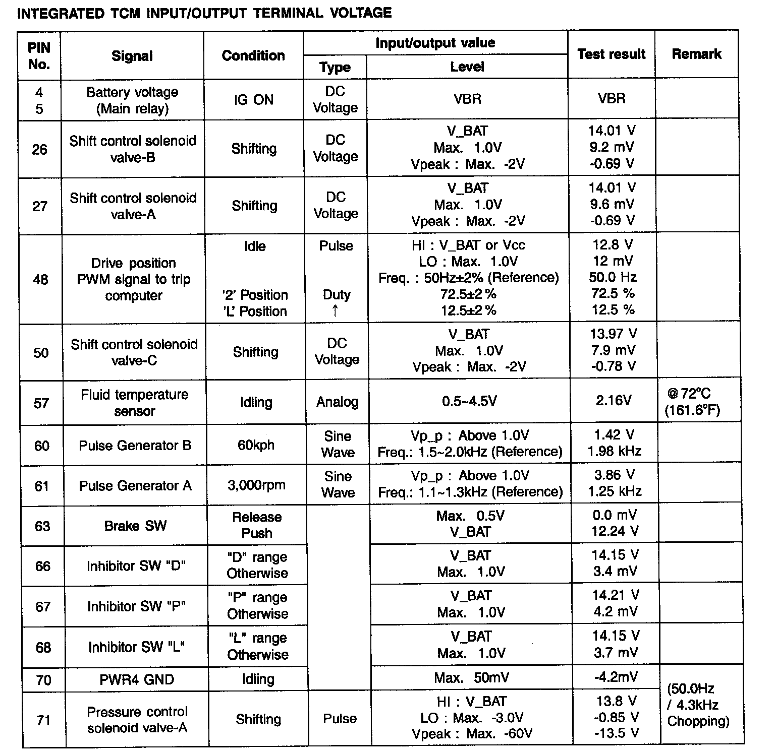 INTEGRATED TCM INPUT/OUTPUT TERMINAL VOLTAGE: