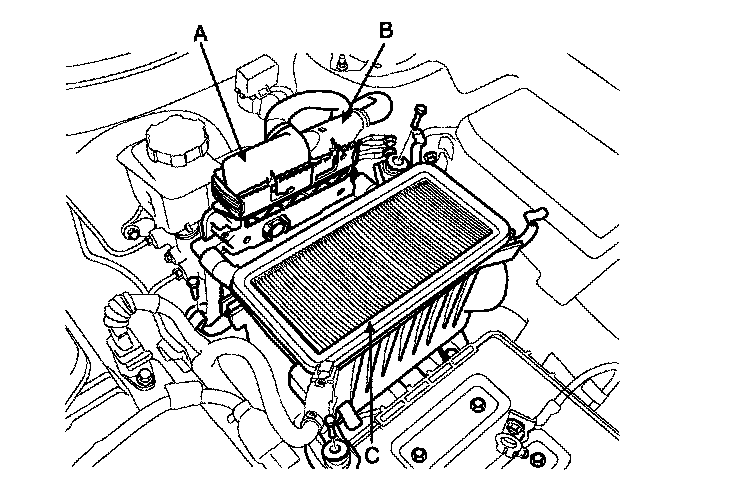 3) Remove the intake air hose(D) and air cleaner upper cover(C).
