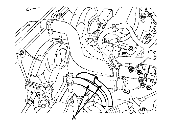 4. Remove the ATF(Automatic transaxle fluid) cooler hose(A).