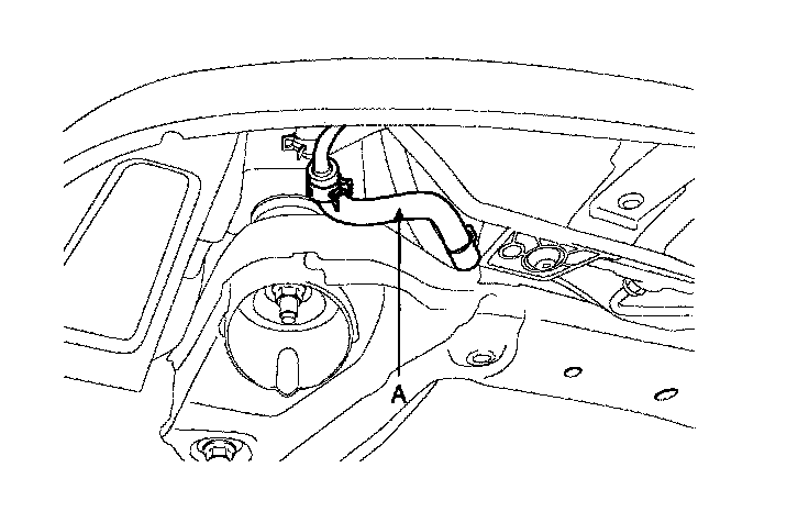 7. Remove the power steering oil hose(A) and drain the power steering oil.