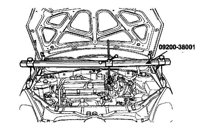9. Install the special tools(09200-38001), the engine support fixture and the adapter, on the engine assembly.