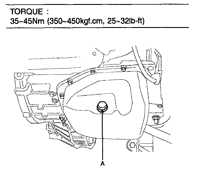 16. Remove the drain plug(A) and drain the automatic transaxle fluid.