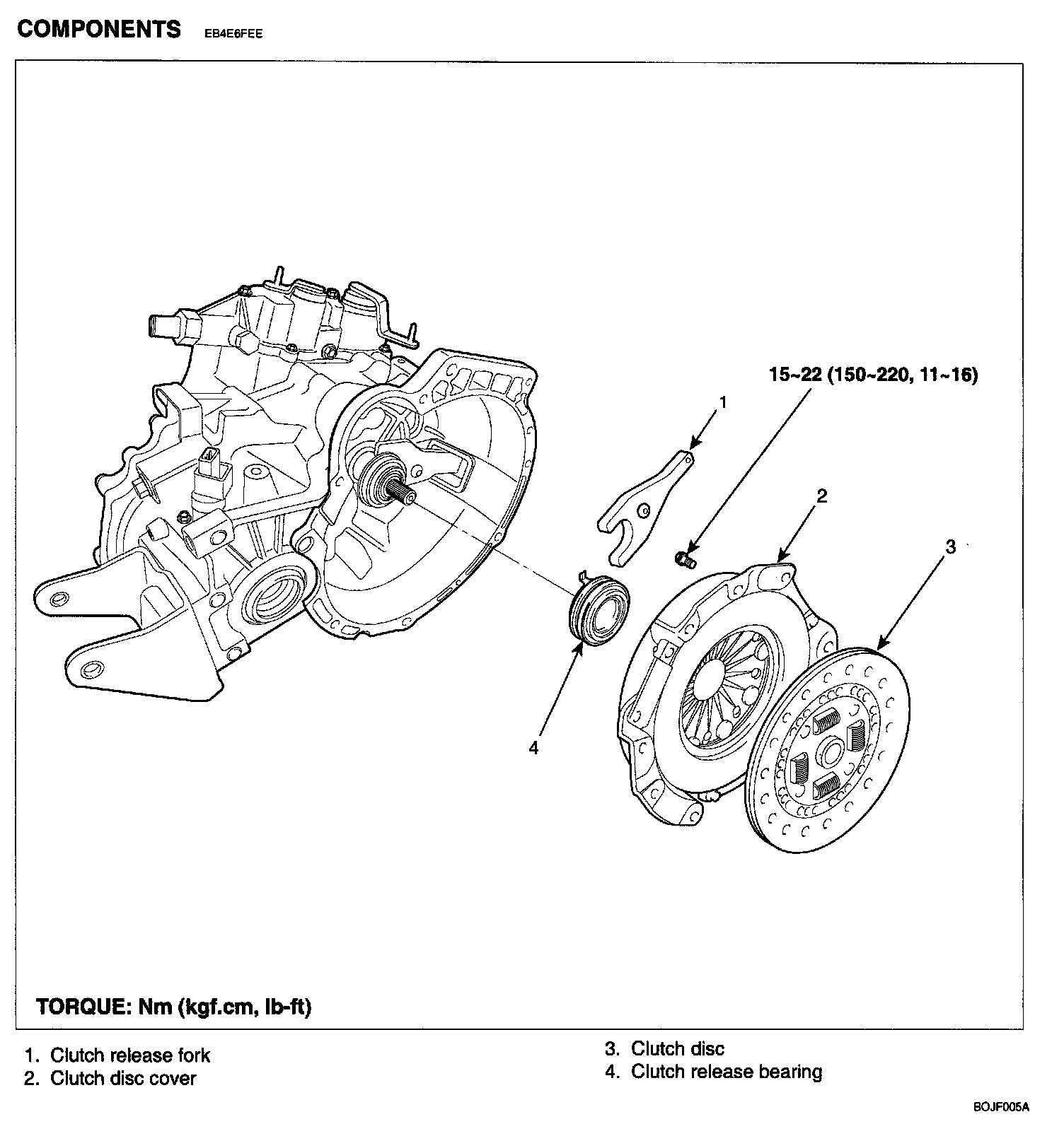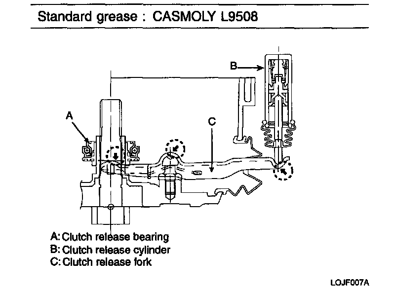 1. Check the bearing for seizure, damage or abnormal noise. Also check the diaphragm spring contacting points for wear.