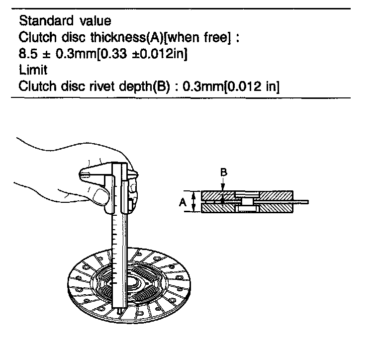 1. Check the clutch facing for loose rivets, uneven contact, deterioration due to seizure, adhesion of oil, or grease, and replace the clutch disc if defective.