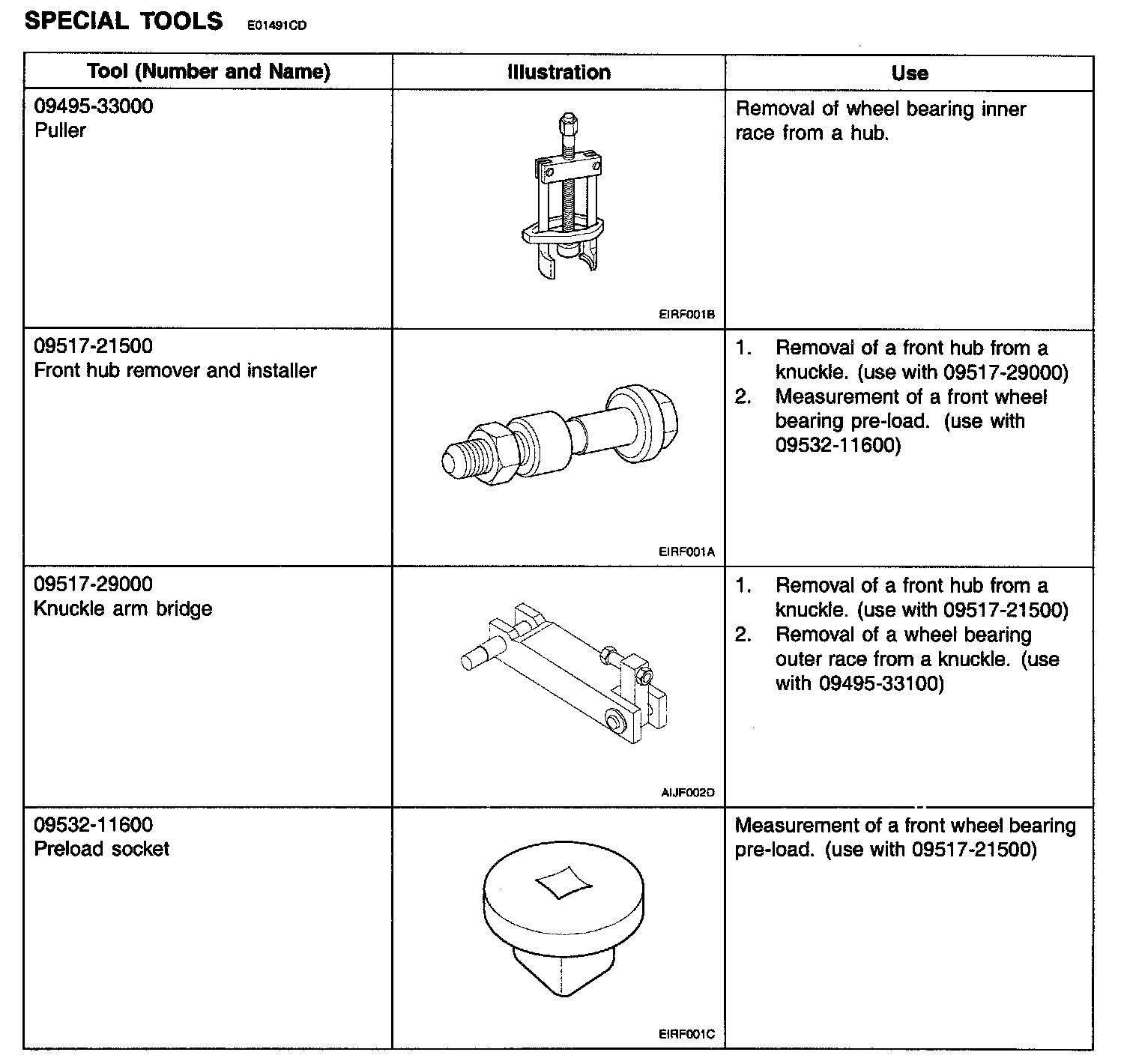 Drive Axles, Bearings and Joints: Tools and Equipment