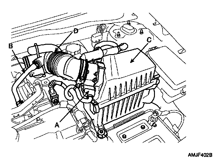 4) Connect the air cleaner hose (D) from the bleeder hose (B).