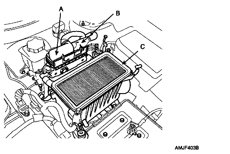 3) Remove the intake air hose and air cleaner upper cover(C).