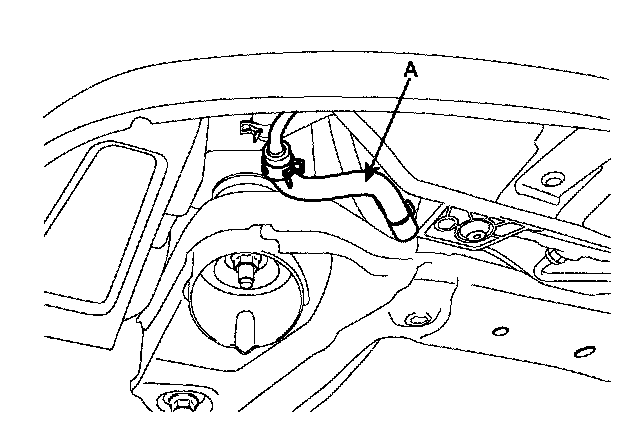 8. Disconnect the power steering return hose (A) to drain power steering oil.