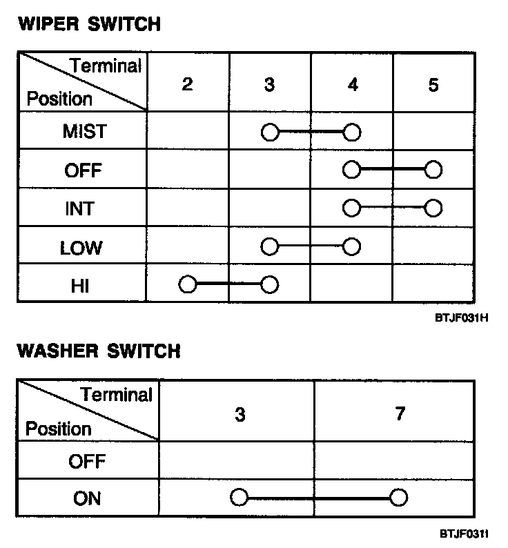 Check for continuity between the terminals while operating the wiper and washer switch. If it is not normal condition, replace wiper and