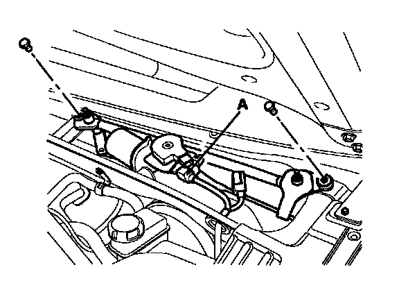 3. Remove the windshield wiper motor and linkage assembly after removing 2 bolts. Disconnect the wiper motor connector (A) from the wiper motor & linkage assembly.