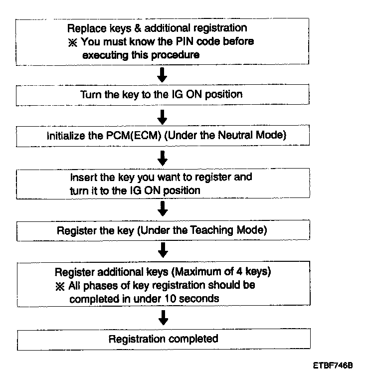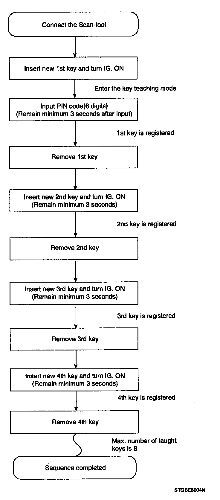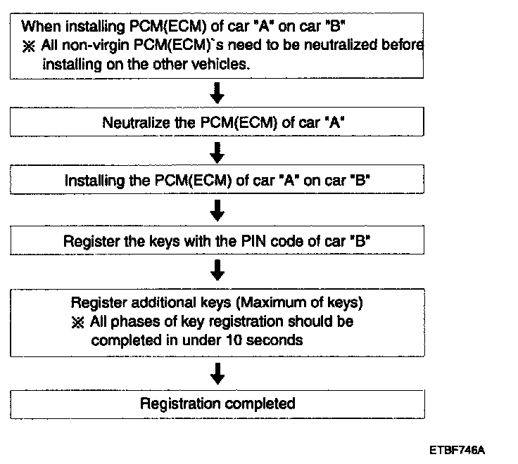 If the PCM (ECM) status and the key status do not match for teaching of keys, the tester procedure will be stopped and a specific fault code will be stored at PCM (ECM).