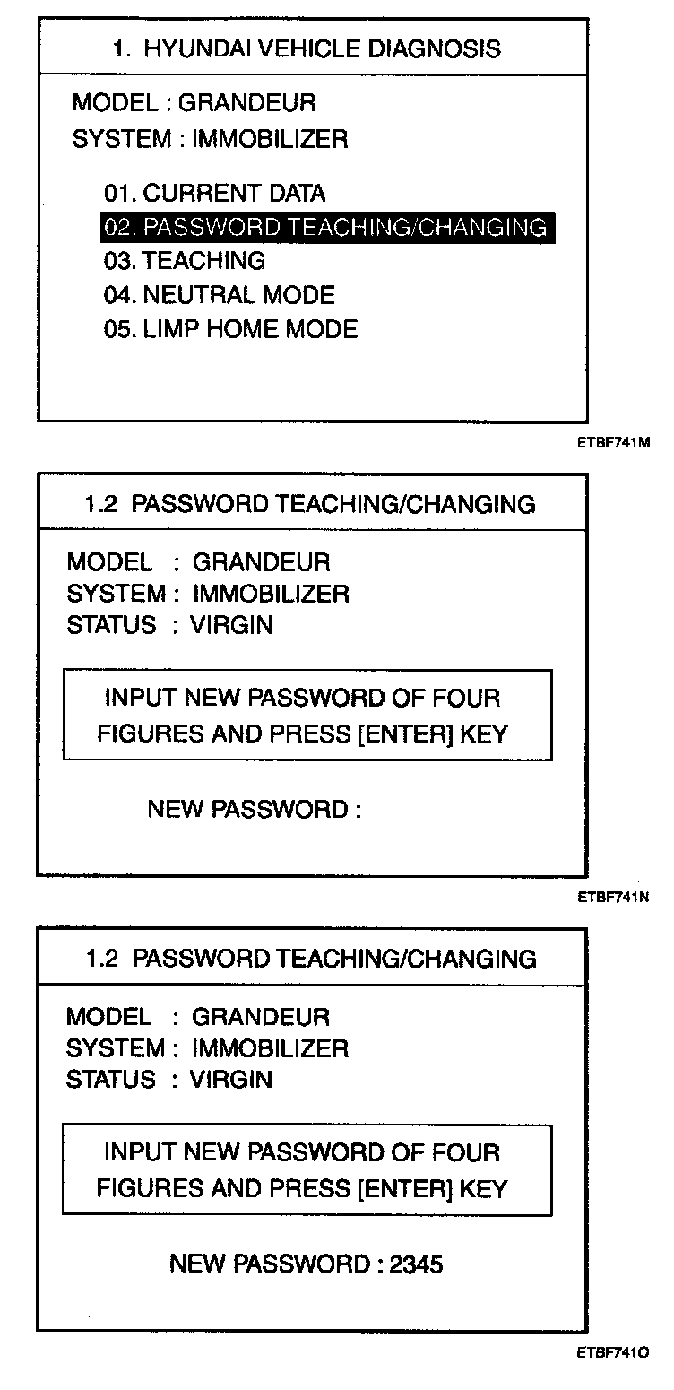 The teaching is started by ignition on, with a valid key (learnt key) and sending the user password by tester. After successful teaching, the status of the user password changes from "virgin" to "learnt"