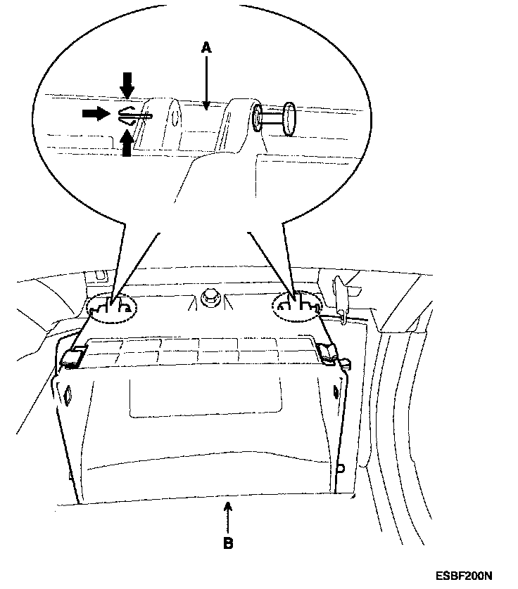 GLOVE BOX REPLACEMENT1. Disconnect the damper (B) from the glove box (A).