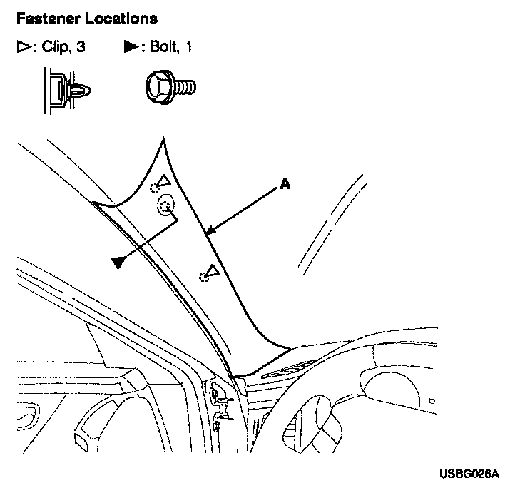 1. Remove the front pillar trim (A).