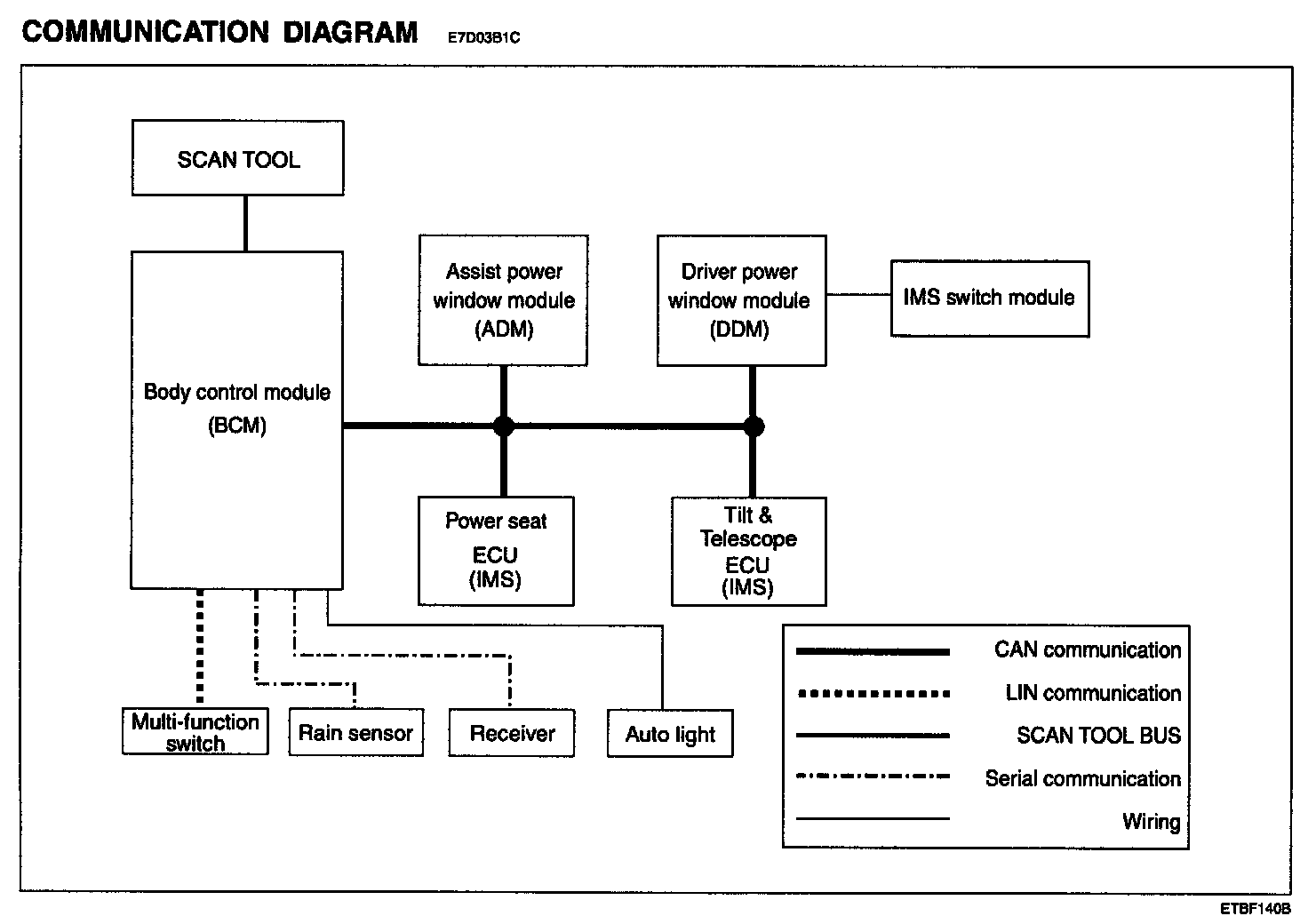 Assist power window switch, a component of CAN, performs CAN communication with BCM, seat ECU, tilt ECU, driver power window switch. Passenger controls assist power window switch button located inside of the assist door to operate power window, mirror, door lock and unlock.
