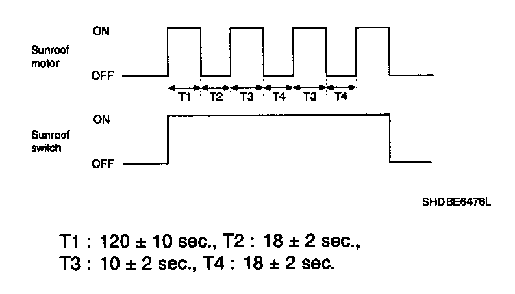 In order to protect the overheated sunroof motor by continuous motor operation, the sunroof ECU controls the Run-time and Cool-time of motor as followings;