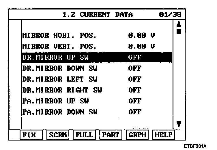 7. Check OFF -> ON when driver door mirror switch up & down operation.