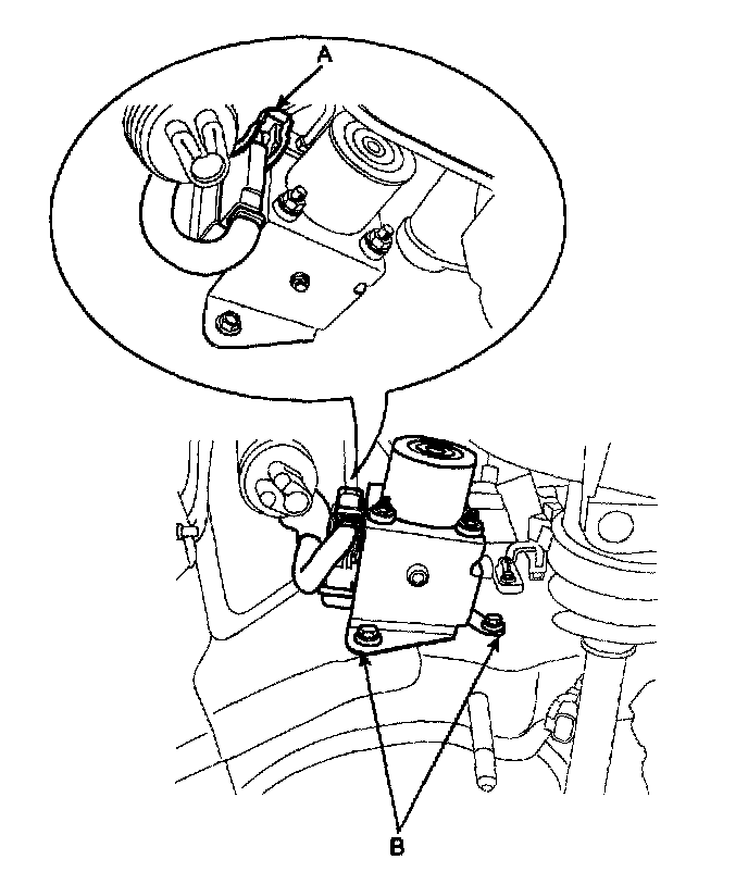 4. Remove the two HECU brake mounting bolts(B), and then disassemble the HECU with the bracket.