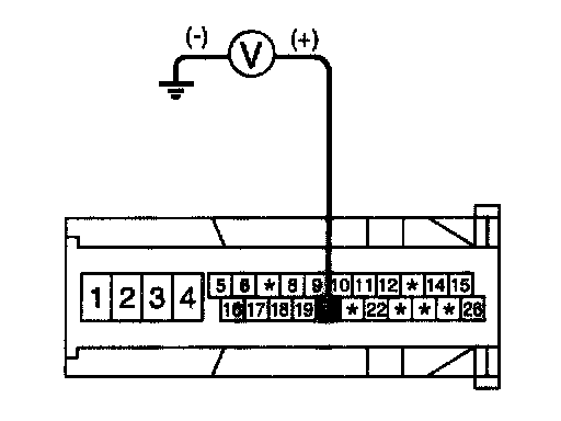 2. Measure the voltage between terminal 20 of the ABS control module harness side connector and body ground when brake pedal is depressed.