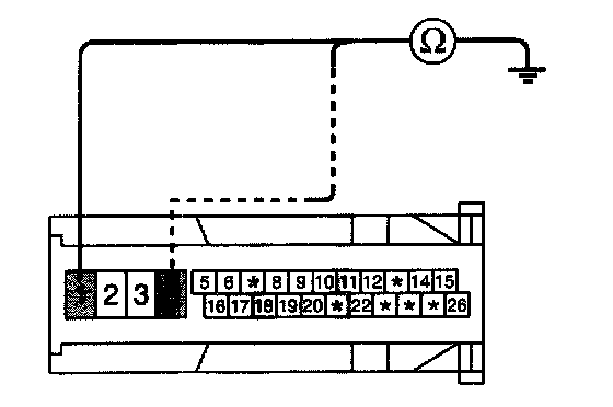 2. Check for continuity between terminals 1,4 of the ABS control module harness side connector and ground point.