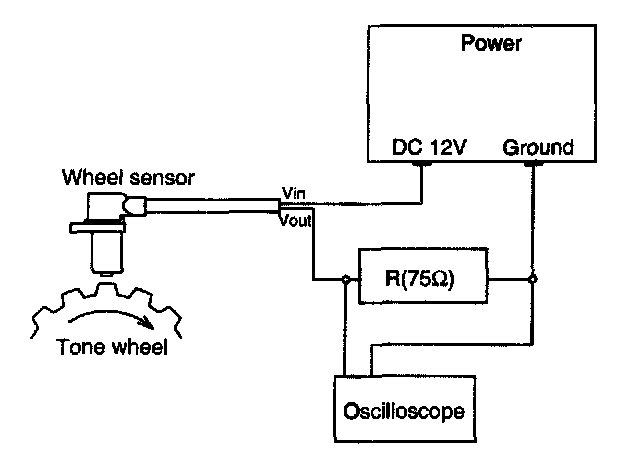 2. Compare the change of the output voltage of the wheel speed sensor to the normal change of the output voltage as shown below.