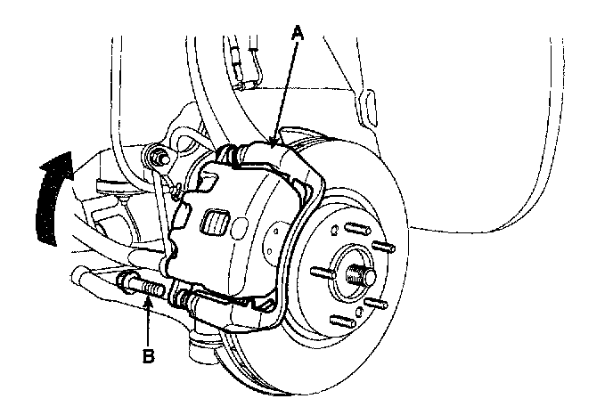 2. Remove the guide rod bolt(B), After raise the caliper assembly(A), support it with a wire.
