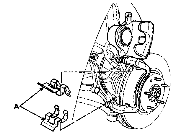 6. If caliper assembly was removed, install the brake hose to the caliper.