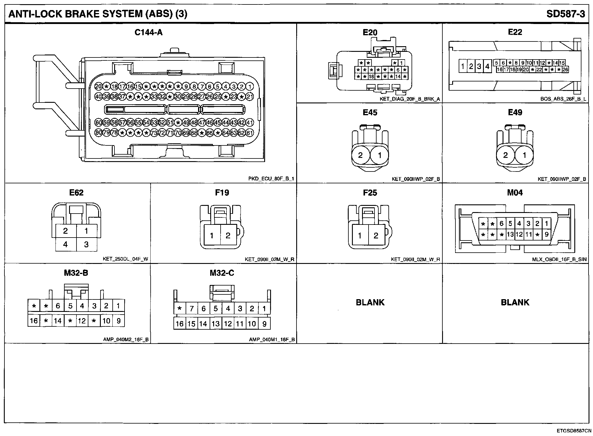 Anti-lock Brake System (ABS) Connector Pin Outs: