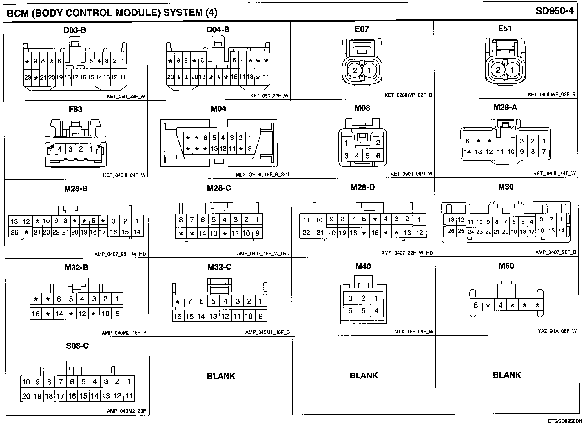 BCM (Body Control Module) System Connector Pin Outs: