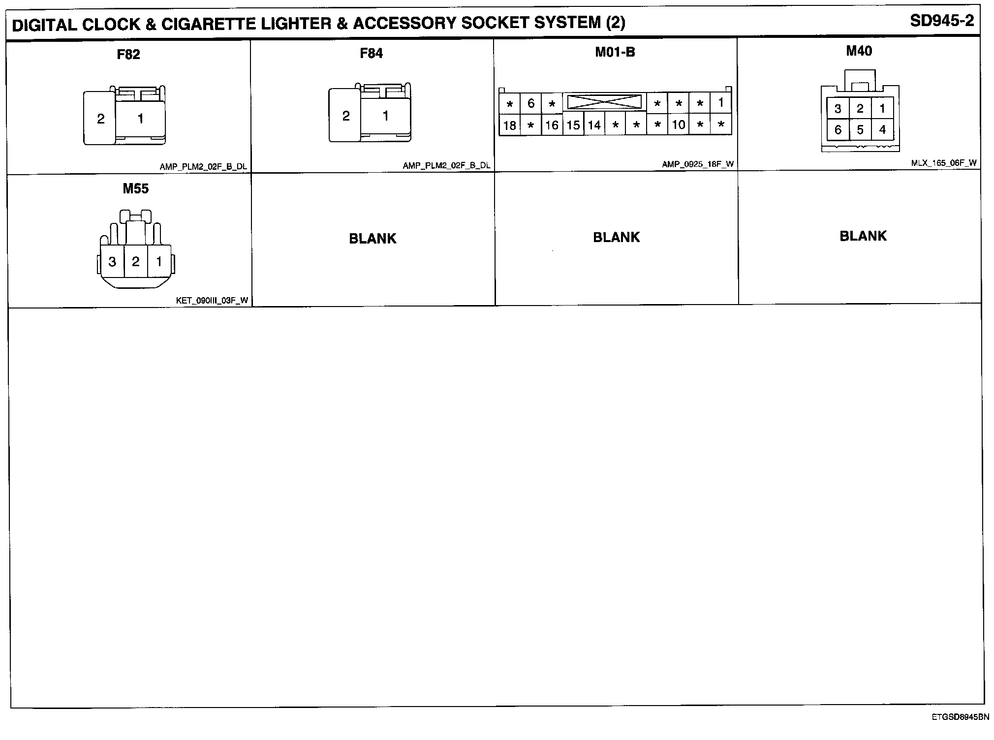 Digital Clock & Cigarette Lighter & Accessory Socket System Connector Pin Outs: